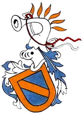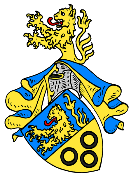 Das mutmaßliche Stammwappen zeigt auf blauem Grund einen goldenen Löwenkopf mit einem goldenen Sparren im Maul. Als Helmzier ist ein Schwan mit ausgespreizten Flügeln bekannt. Hierbei handelt es sich möglicherweise um eine nachträgliche Zuschreibung.[10]